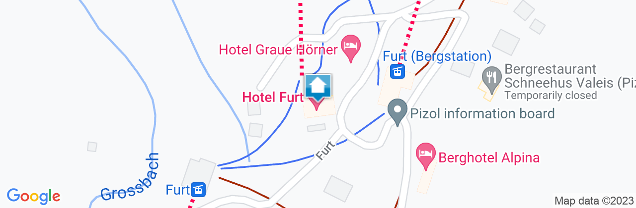Bitte beachten Sie, dass das Hotel im Winter nur mit der Seilbahn von Wangs aus erreichbar ist. Nach der letzten Bergfahrt um 16:45 Uhr gibt es keine Möglichkeit, das Hotel zu erreichen. Die Seilbahnstation Furt Gaffia befindet sich neben dem Hotel.