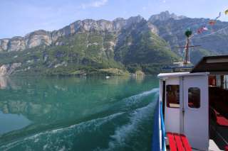 The boat takes you to the picturesque villages on Lake Walen, where a starter, main course and dessert await you.