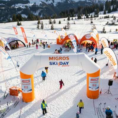 The participation fee is CHF 124 per family. Famigros and Swiss-Ski members benefit from an additional CHF 25 discount and pay just CHF 99 for a day's skiing for the whole family.
