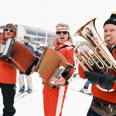 Get your spaghetti skis and race boards out of the cellar - we're celebrating the good old 80s together. Throw on the gaudy one-piece suits, put on the legendary SKA CS caps and get in shape with Ernst for an extraordinary day of skiing including a parade run.
