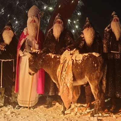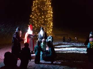Santa Claus likes to sing and sing songs and as a thank you, Santa Claus and the Schmutzlis, together with the donkey, hand out a free Santa Claus bag to all the children present.