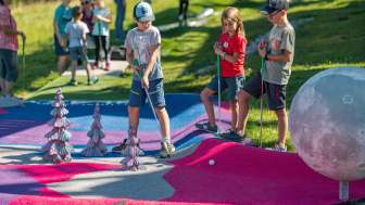 The varied Adventure Golf course is located right next to the Prodalp mountain restaurant. No two courses are the same here. On the 12-hole course, grandparents, parents and children alike play their way through the winding "Munggä-Bau", follow the fascinating "Rohan Rothirsch Adventure Trail", climb the "Spitzmeilen" and shoot the minigolf ball down the legendary "FLOOMZER".
