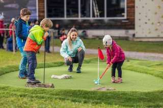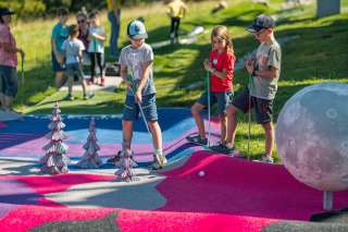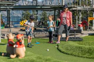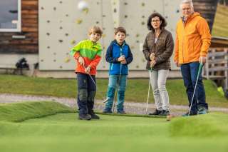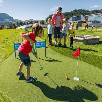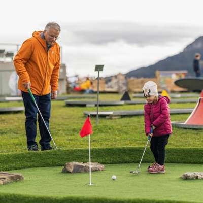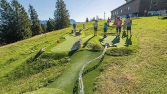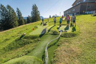 The Adventure Golf course next to the Prodalp mountain restaurant offers a varied 12-hole course. Grandparents, parents and children can explore the winding Munggä building together and shoot the minigolf ball down the legendary FLOOMZER.
