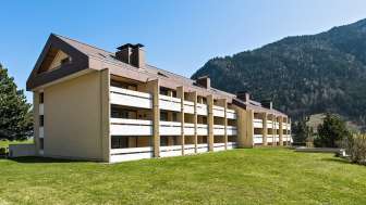 The Quadern apartment building is located in the village center of Valens, in the immediate vicinity of the rehabilitation clinic. The quietly situated apartment building has spacious surroundings. The vacation apartment is integrated into the building with 32 condominiums. Shopping facilities and post bus stops are just a few steps from the house. Thanks to its excellent accessibility from Bad Ragaz via the largest arched bridge in Switzerland, Valens is attractive at any time of year. Surrounded by impressive mountain scenery, you can relax at the starting point for excursions for hiking, biking, swimming and much more.