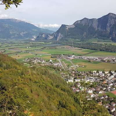The Guschachopf viewpoint in Bad Ragaz offers an impressive view of the spa town and the Bündner Herrschaft. The well-signposted hiking trail leads past the St. Anna Chapel and through the Chrinnenwald forest back to the village.