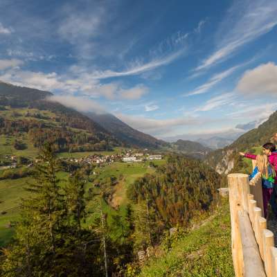 The Windegg vantage point in the Tamina Valley offers a unique view of the Glarus Thrust and the Tamina Gorge. It is a popular resting point with information boards and climbing rocks.