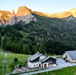 Mountain inn next to the cow farm with the opportunity to watch the milking. Sunny, cozy terrace and rustic restaurant. Simple dishes during the day, special menus in the evening.