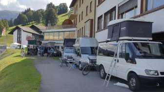 If you can't get enough of the biking trails on the Flumserberg, you have the option of staying overnight in the immediate vicinity. Directly at the valley station of the 12-seater Prodalp-Express gondola lift in Tannenheim, to be precise. There are parking spaces for buses and vans between the valley station and the après-bike bar "sonderBar". In addition, motorhomes up to a maximum length of 7.50 m can be parked behind the Flumserberg tennis court and in the immediate vicinity of the BikerShop Flumserberg. The infrastructure of the Aparthotel Edy Bruggmann is available to all campers.