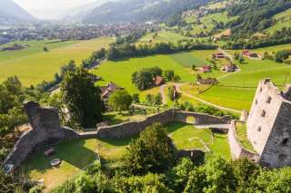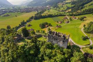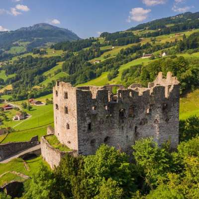 On the castle hill stand the ruins of the medieval knight's castle, which the Lords of Flums built around 1220 on the "crap long," or "long rock." After several feudal owners, the castle fell to Zurich in 1419. In 1440, it was destroyed by troops from Glarus and Schwyz. Ludwig Tschudi bought the fortress in 1528, but after extensive construction work, it had to be sold again in 1767 due to financial problems. Several owners followed until the castle, now in a state of disrepair, was sold for demolition in 1804. In 1923, the municipality of Flums acquired, renovated, and maintained the ruins.