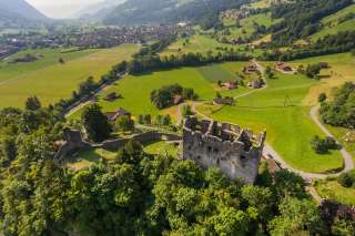 On the castle hill stand the ruins of the knight's castle, which became famous in the Middle Ages and was built by the Lords of Flums around 1220 on the "crap long", the "long rock". After several fiefdom owners, the castle fell to Zurich in 1419. It is destroyed by Glarus and Schwyz troops in 1440. Ludwig Tschudi buys the fortress in 1528, which has to be sold again in 1767 due to financial problems after a period of lively building activity. Several owners followed until the neglected castle was sold for demolition in 1804. In 1923, the municipality of Flums acquired, renovated and maintained the ruins.