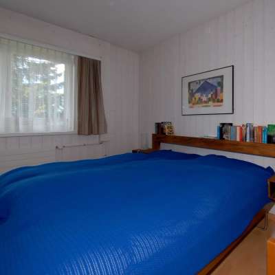 The kitchen is open to the dining room and living room. There is plenty of crockery and cutlery, allowing even a family of five to entertain additional guests. There is a microwave for fast cooks, a coffee machine for coffee addicts and a fondue set for cheese lovers.