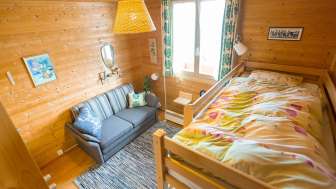 The charming 3.5 room apartment is located in the middle of nature. Right next to the winter hiking trail and the ski slope, or the summer high trail and the biker trail. The apartment is ideal for 2-4 people. The living space is 35m2. The chalet was built in 1970, but has been renovated several times in recent years. The ski slope is right next to the chalet. The Prodalp-Express is only about 2 minutes away. In summer the access is directly in front of the chalet and in winter the access is ensured via a footpath of 300m over the Obere Anggetlinstrasse and the winter hiking trail.