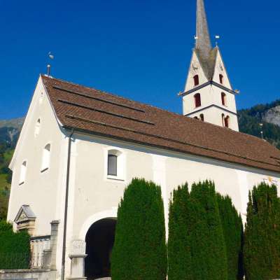 The first church is thought to date back to the 7th/8th century. The slender church tower leans against the stately, late Gothic nave. The west wall of the arcade-shaped porch is adorned inside and out with epitaphs from the noble families of Gugelberg, von Planta and von Salis. The interior is characterized by a simple late baroque style. The bell ringing has included five bells since 1961 and two in 1788.