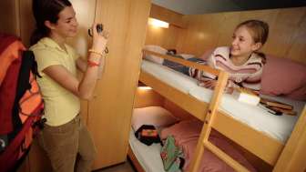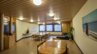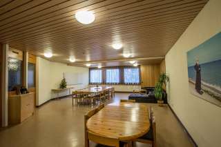 The family and youth center offers its guests a total of 79 beds on two floors. From a family dormitory for 5 to a dormitory for 12 for groups, there is something for every number of people. The offer is completed by two single and two double rooms as well as two kitchens with a lounge for self-catering.