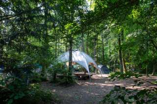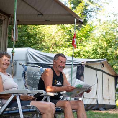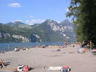 An idyllic campground in the popular Gäsi recreational area on Lake Walen.