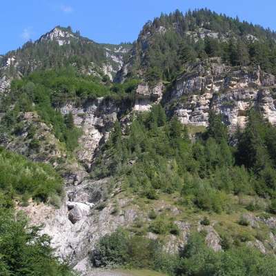 The Chrüzbachtobel area near Vättis is a geological window with exposed bedrock. Cave bear bones dating back 53,000 years were discovered here. A complete layer profile from the Triassic to the Tertiary period is visible.