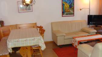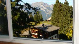 Part of the house right next to the ski/chair lift and cable car mountain station. Sun terrace with views of the Rhine Valley and Churfirsten. Parking lot in summer. SAT-TV.