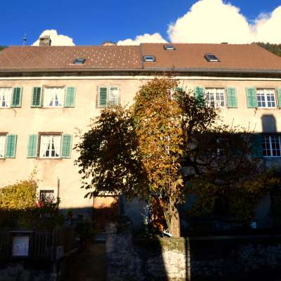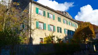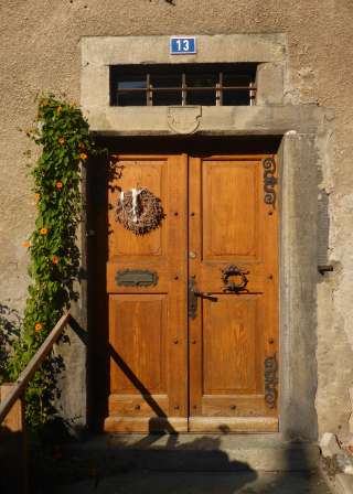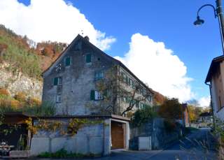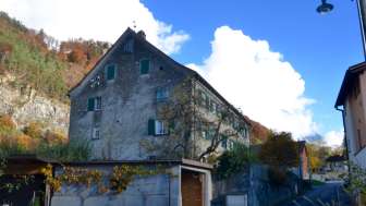 The Risch House in Fläsch is a detached, large-volume semi-detached house dating from 1784. It impresses with its unaltered spatial structure and the coat of arms of the builders Amandus Marugg and Eva Sulzer between the front doors.