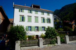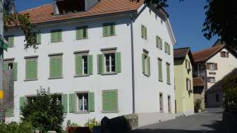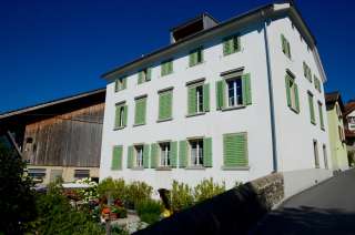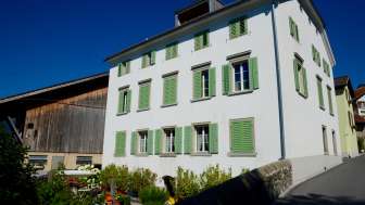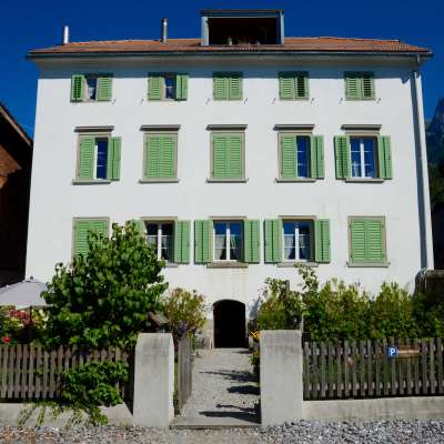 The Weinzürle house in Jenins forms a gateway to the village center with its crippled hipped roof and the residential building opposite. The sandstone entrance and the geometrically laid out cottage garden date back to 1860.
