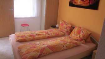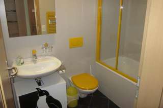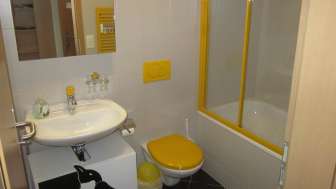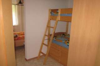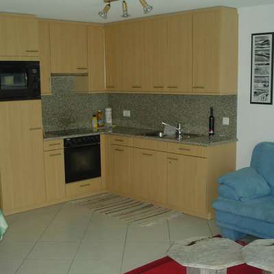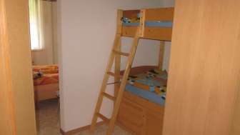 The Jolyhaus is centrally located right next to the Schwammkopf ski lift. The 2.5-room apartment is located on the 2nd floor and is easily accessible by elevator. The bedroom is divided into a children's compartment with a bunk bed and the parents' compartment with a double bed. The bathroom is equipped with a bathtub and shower. The shared ski room is located on the first floor.