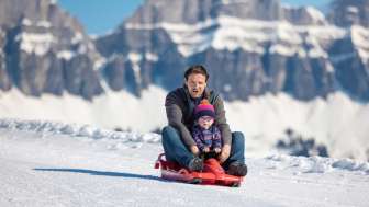 Children's tobogganing fun Prodalp: Located next to the chairlift, the flat descent offers safe sliding fun for children with a bobsleigh or snow toboggan.