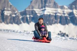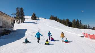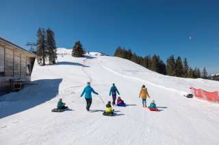 Whether on a bobsleigh or snow sledge, children can let off steam on the toboggan slope and take as many rides as they like.