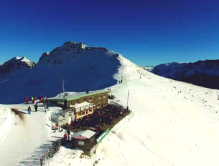 Large south-facing terrace (120 seats in summer / up to 300 seats in winter) with a magnificent panoramic view and plenty of sun from early to late. Cozy restaurant for about 70 people. In winter you can enjoy wonderful views of the snow-covered panorama from Ringelspitz to Piz Sardona, Spitzmeilen and Magerrain. In summer, enjoy the magnificent view over alpine meadows and mountain peaks and watch the marmots from our terrace!