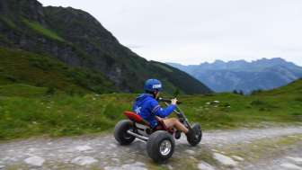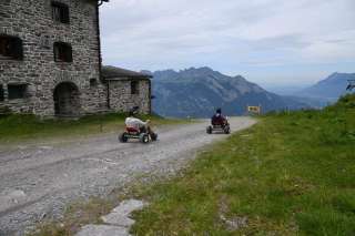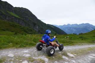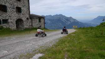 The mountain carts on the Pizol offer an exciting driving experience on a 2200 m long track between Gaffia and Furt. The carts are stable and powered by gravity, which allows for a safe and individual pace.