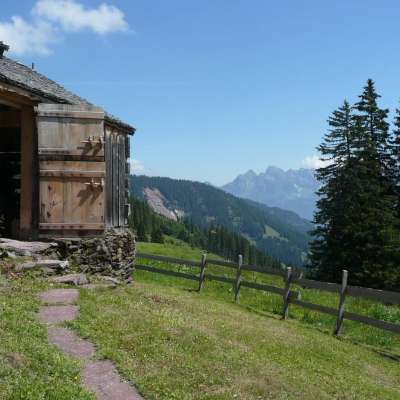 The Mulchenhütte Lauiboden is located in the untouched nature of the Schilstal valley, far away from the stress of everyday life. Time seems to have stood still here. Lush alpine meadows, mountain streams, dark fir trees and imposing mountains characterize the picture. It looks as if Heidi and the Alpöhi are about to step out of the alpine hut.
