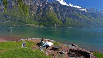 Murg Camping am Walensee offers 20 caravan pitches directly on the lakeshore. Surrounded by gardens, it offers an impressive view of the Churfirsten mountains. Water sports facilities and comprehensive services are available in the village.
