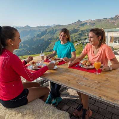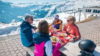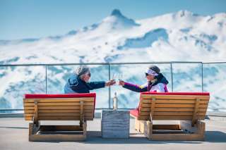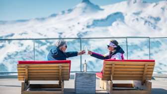The Maschgenkamm panorama restaurant on the Flumserberg offers an impressive view of the surrounding mountains. With seating in the bright round building, a spacious dining room and a large sun terrace, it is ideal for those seeking relaxation.