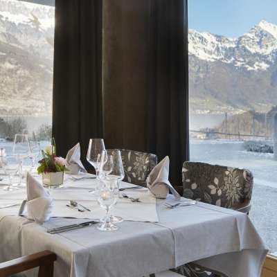 The Café-Restaurant Neu-Schönstatt in Quarten offers an impressive view of the Churfirsten and Lake Walen. The summer terrace invites you to linger, ideal for families, groups of friends or hiking groups.