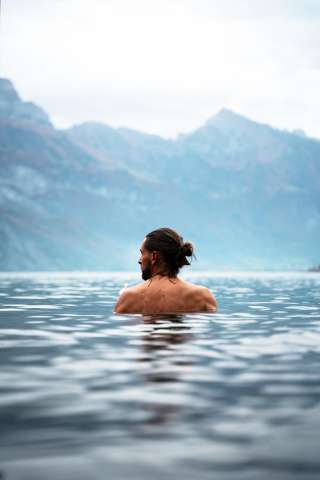 The sauna on Lake Walen offers a climate-neutral sauna experience with spectacular lake views from October to April. Suitable for up to six people, it invites you to relax in a unique setting.