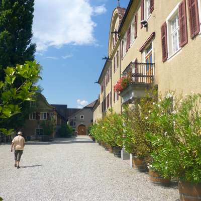 The almost symmetrical castle complex was built between 1782 and 1784 by combining various stages of construction (Ulysses Gugelberg). It is still owned by the Gugelberg von Moos family today. The ornamental garden and vineyard encompass the castle and courtyard. Gardener's house and staggering building in the northwest. The willow tree inspired Rainer Maria Rilke to write the poem "The Willow of Salenegg" in August 1926.
