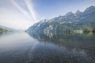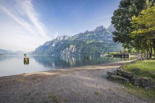 See Camping Bürer is located directly on the eastern shore of Lake Walen, about 1 km from Walenstadt. The campsite offers pitches for tents, caravans and motorhomes as well as numerous amenities such as a playground, barbecue areas and a camper station.