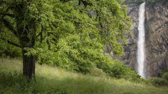The Seerenbach Falls near Betlis on Lake Walen form a cascade of three waterfalls with a total height of 585 meters. In the gorge in which the Seerenbach Falls plunge imposingly into the depths, the Rinquelle also comes to light. From an underground cave system, impressive masses of water pour into a 22-metre deep abyss. At 305 meters, the Seerenbach Falls in Betlis is one of the highest waterfalls in Switzerland.