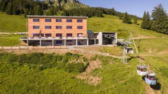 Our cable car has been in operation since 1976 and was built by the local company Bartholet AG. The aerial tramway with two linked 4-seater cabins can transport 40 passengers per hour. The valley station in Flums Saxli is located at 640m above sea level, from where the cable car runs for 2,407m directly to the Berghotel Schönhalden at 1494m above sea level.
