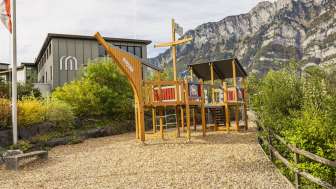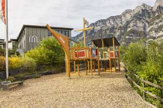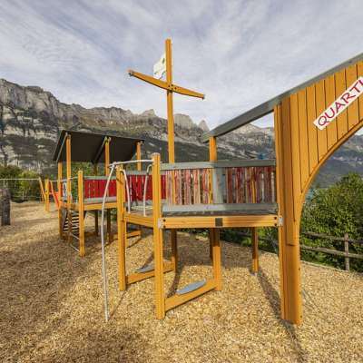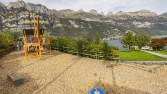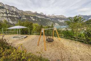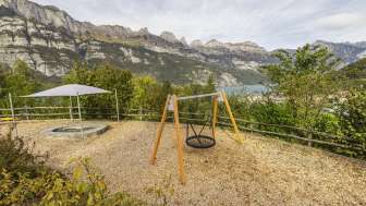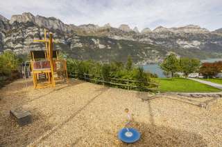 The playground at the Neuschönstatt restaurant in Quarten offers families and children a chance to let off steam after a meal. Attractions include a climbing tower, a hammock swing, a sandpit and a slide.