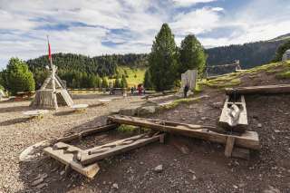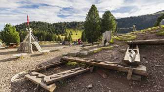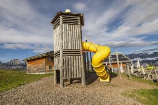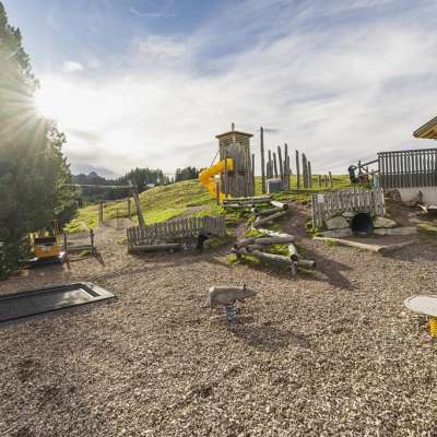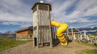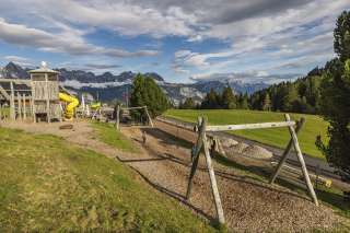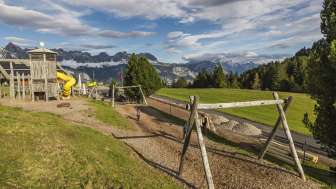 The playground at the Sennästube restaurant in Flumserberg Tannenboden offers numerous activities for children, including a zipline, a trampoline and a round slide. It is located right next to the restaurant terrace and is ideal for families.