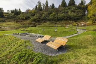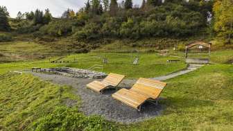 The Heidipfad Pizol playground in Wangs offers children a variety of sensory experiences and play opportunities. Barefoot paths, stone paths and a Kneipp facility invite you to explore. Benches and wooden loungers offer relaxation.