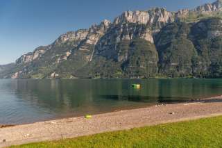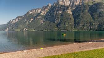 The Unterterzen lido on Lake Walen offers a spacious sunbathing lawn, a beach kiosk and a pebble beach. Water sports enthusiasts can hire kayaks or SUP boards. Changing rooms and toilets are available.