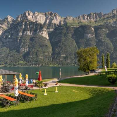 The lido is located in Unterterzen on the grounds of the Resort Walensee and is ideal for getting a tan on warm summer days. A spacious sunbathing lawn, a beach kiosk to satisfy your hunger and a pebble beach ensure a cozy atmosphere. An open fireplace offers the perfect barbecue experience for young and old.