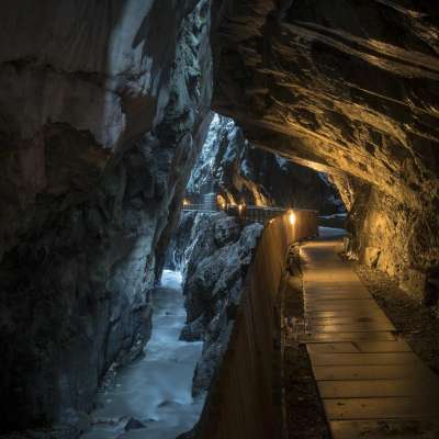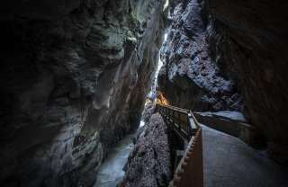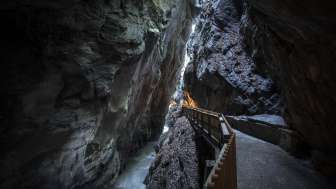 The Tamina Gorge near Bad Ragaz offers a 450-metre-long, safe path to the spring water grotto. Here, 8000 liters of thermal water bubble up every minute from Europe's most productive acratothermal spring with a constant temperature of 36.5 °C.