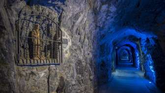A few meters from the Old Baths of Pfäfers is the entrance to the mystical thermal water spring gorge. The 450-meter-long, safe path leads through a tunnel into the interior of the rock, past a small thermal water fountain to the spring water grotto. The rock walls in the gorge tower up to 80 meters high along the way. In the spring water grotto, you can experience firsthand how around 8,000 liters of water per minute bubble out of the rock from Europe's most productive akratotherme. Researchers suspect that the water seeps away in the Tödi or Sardona area. It is heated until it returns to the surface in the Tamina Gorge after more than 10 years at a constant temperature of 36.5 °C.