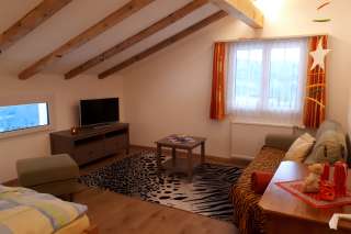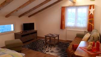 All three apartments are comfortably furnished and have a living room with sofa, sleeping accommodation and flat-screen TV, a dining area with dining table, bench and chairs as well as a small kitchen with everything you need. Bathroom with WC, bathtub or shower.