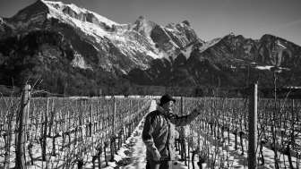 Vines and wine are our passion, our motivation. We love the craft, the varied work throughout the seasons. In winter, when we lay the foundations for the coming vintage by pruning the vines under the clear skies of the Bündner Herrschaft . In summer, when the dewdrops glisten on the vine leaves as we work on the leaves in the morning. And especially in the fall, when we pick the grapes with the harvest team - which we call "wimmle" - and then the work in the cellar begins.
