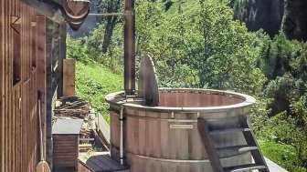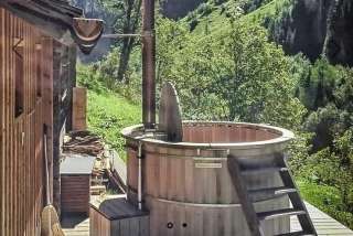 The barrel sauna in Sankt Martin offers pure relaxation in the middle of nature - with sauna, hot tub and views of the "7 Organs". Perfect for relaxing after an active day in the Tectonic Arena Sardona.